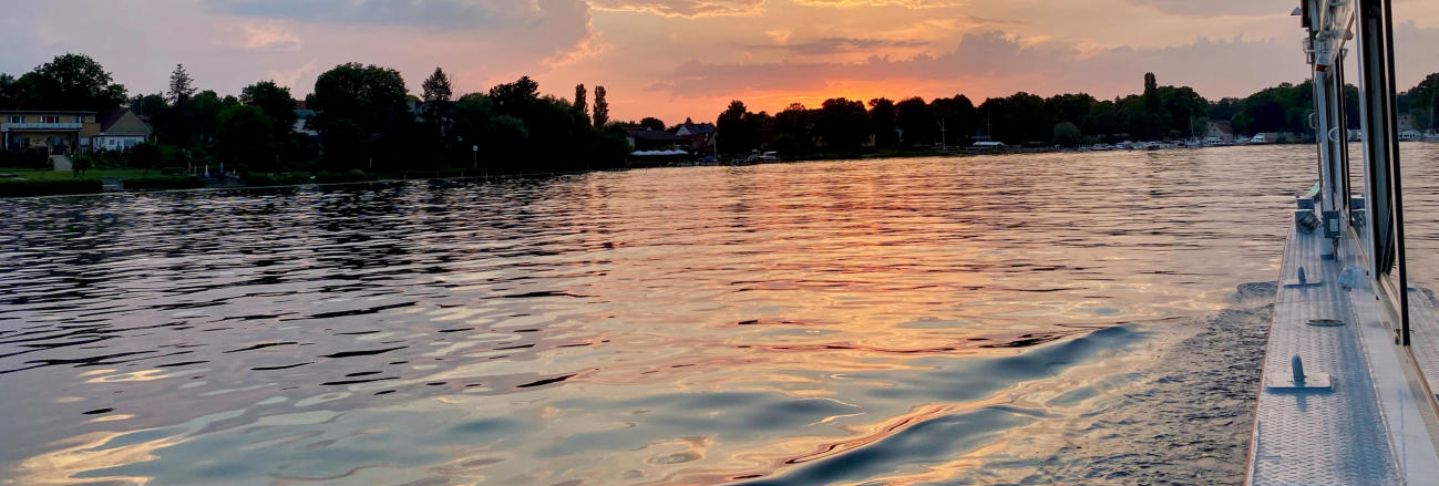 Erleben Sie diese abendliche Schifffahrt auf der Unterhavel vorbei am Grunewald, Gatow und Kladow.Von hier aus geht es weiter über den Großen Wannsee, vorbei am Strandbad Wannsee, der Wannseevilla bis zu den Anlegestellen am S-Bahnhof Wannsee. Nach Passieren der Wannsee-Brücke geht es durch den idyllischen Kleinen Wannsee über den Pohlesee, Stölpchensee und Griebnitzsee bis nach Babelsberg. Nach dem Blick auf die Potsdamer Silhouette durchfahren wir die geschichtsträchtige Glienicker Brücke und passieren den Jungfernsee mit Blick auf den Neuen Garten. Vorbei an der Sacrower Heilandskirche kommen wir anschließend zu einem weiteren Highlight - der Pfaueninsel, welche zum Weltkulturerbe der UNESCO gehört. Weiter geht es nach einem kurzen Stopp vis-à-vis der Pfaueninsel über Kladow zurück nach Spandau zum Lindenufer.