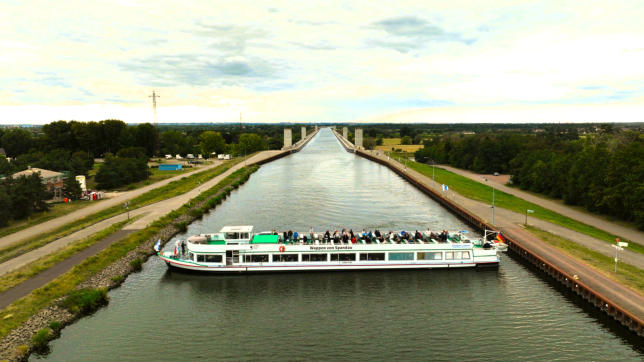 Die Schiffsreise startet um 7 Uhr mit dem Fahrgastschiff Wappen von Spandau am Lindenufer. Während des Frühstücks passieren wir den Großen Wannsee, die Pfaueninsel und fahren in den Sacrow-Paretzer-Kanal ein. Nachdem wir am Vormittag die Schleuse Brandenburg passiert haben, geht es weiter durch den Elbe-Havel-Kanal. In der Schleuse Hohenwarthe überwinden wir einen Höhenunterschied von ca. 18 Metern um im Anschluss die Kanalbrücke am Wasserstraßenkreuz Magdeburg über die Elbe zu befahren.Um 18.00 Uhr erwartet Sie ein moderner Reisebus der Sie in ca. 2 Stunden wieder zurück nach Berlin-Spandau bringt. Am Folgetag findet die Tour gleichwertig in umgekehrter Reihenfolge statt. Anstatt des Frühstücks erhalten Sie ein Abendessen auf dem Schiff.