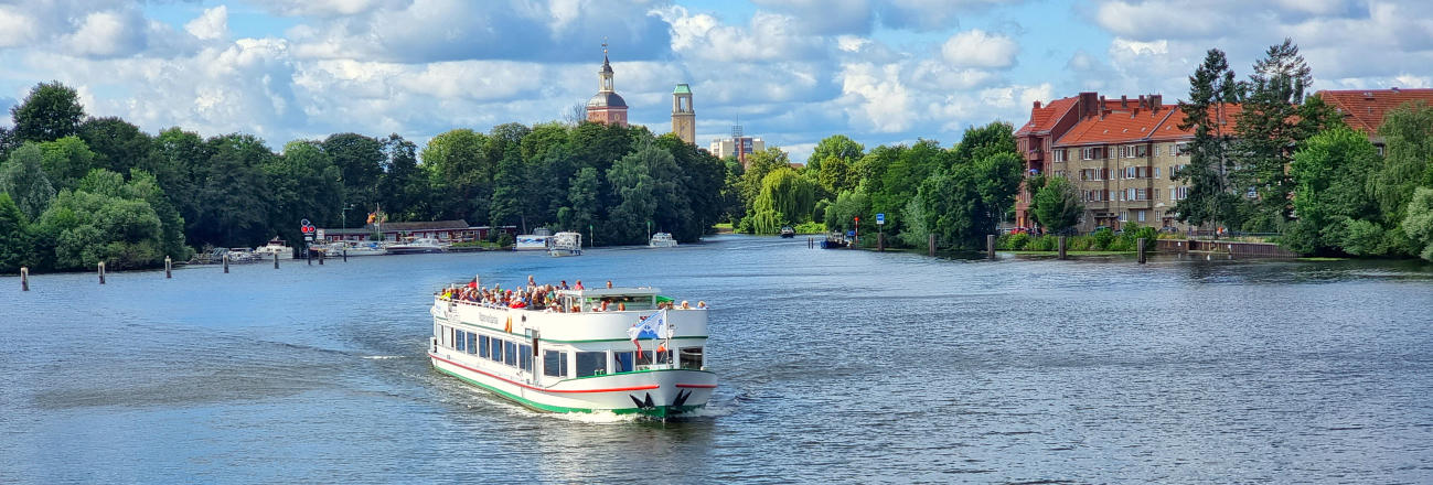 Abfahrtsort: Spandau LindenuferAnlegestelle Reederei Lüdicke(Gegenüber Lindenufer 39, 13597 Berlin)Termine:Montag, 5.5. und 28.7.2025um 10.30 UhrFahrzeit: ca. 7,5 StundenFahrpreis:Erwachsener 35,00 € Kind 6-16 Jahre 50% ErmäßigungKind unter 6 Jahre kostenlosErmäßigung:Auf allen Linien- und Tagesfahrten von Montag bis Samstag, bei Hin- und Rückfahrten. Bei Teilstrecken, Schiff und Bus Kombitouren, Eventfahrten und an Feiertagen keine Ermäßigung.Schwerbehinderte, Senioren ab 60 Jahre, Studenten, Schüler & Arbeitssuchende erhalten 3 € Ermäßigung.