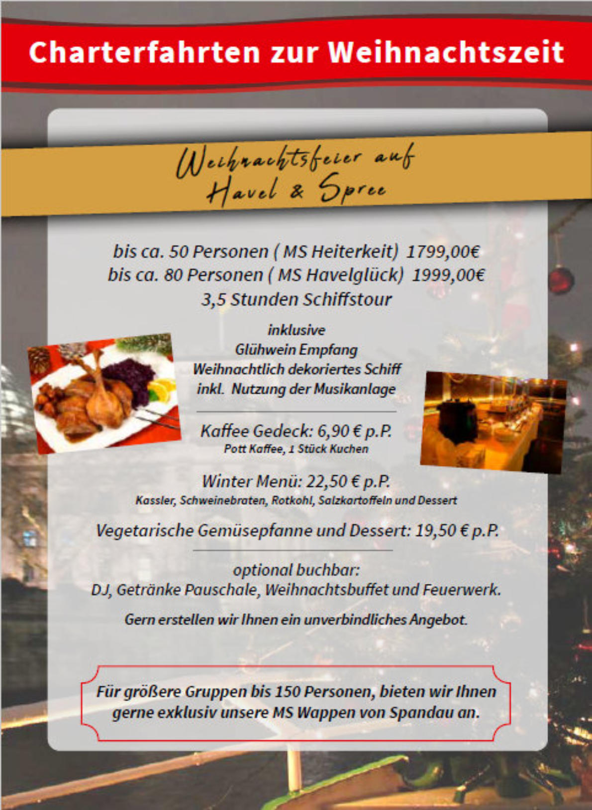 Ahoi! -> Fahrplan -> Schiff mieten-> Weihnachtsfeier